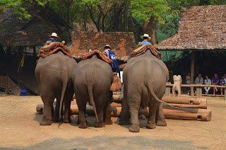 Two of the big highlights for the day were the visits to the Maesa Elephant Camp and ..... Tiger Kingdom! This was so cool! The elephants were amazing, especially when they were painting.... Better than me. Brad & I loved going one on one with the tigers. We went inside 4 cages... Once for the big tigers, medium, small & smallest. It was wonderful and very scary at times.... especially with the big ones or when one came up from behind and you didn't know it. I'm not sure the handlers knew it either. Great day!!!!