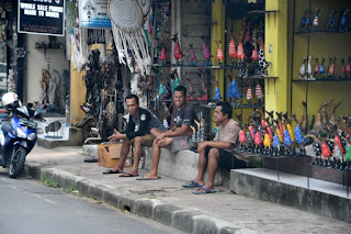Bali, beautiful Bali.... Beautiful island and beautiful people! We sailed into Bali and we were met by my old friend Made to begin a two day tour in Bali. Our band of happy travelers headed out to explore Bali.... Mike, Janet, Margo, Harry, Ann and myself, unfortunately Cathy was under the weather and stayed on the ship. It was so great to see our old friend Made... before you knew it we were on our way with our first stop the Batuan Temple. I always love visiting the temples in Bali... just fabulous! Then it was onward to the Waterfall Tegenunganun ... a picture of scenic beauty. Next we went to the village of Pengli where we walked through the original village and the into the bamboo forest...very impressive. Our walk through the Gianyar District outdoor market was excellent.... people photos galore! Our journey continued to the Kubu Bali for pictures of the rice fields, refreshments with some Wi-Fi thrown in....then onto the Tegalalang rice terraces which are spectacular. If you know anything about me, I simply love the rice terraces of Bali... just fabulous works of art! We drove through the artist colony of Ubud with its amazing craftsmanship displayed in the shops. Our last stop before stopping for the evening was the Sarawati Temple. We arrived at our hotel the Ti Amo Resort and were impressed with the location overlooking the stunning rice terraces, the rooms and grounds were beautiful and Mike and Janet were able to take an evening and morning walk through the rice paddies and my two hour massage was a perfect ending to the day. After breakfast, we headed to Sleeping Buddha with a photo stop at the Abadan Pengelola Rice Terraces on Jatiluwih Road...you run out of words for the green ribbons of fields that are a testimony to the respect the Balinese have for the land. Next we had spectacular views of Mt. Agung as we could see puffs spewing from the active volcano. We made multiple photo stops along the winding roads, passing sheets of rice drying in the sun along the side of the road...Driving through Papuan area, the rainiest area in Bali we saw fields of vegetables being grown. On our way to the Sleeping Buddha, we drove through the mountainous area of Bedugul we encountered a macaque monkey population...always a great photo stop. Along the road we stopped at a viewpoint that had a swing...the swing was erected high over the mountain side and of course I had to try it out. Next we stopped at Vihara Dharma Giri, home to the Sleeping Buddha...a beautiful temple, the grounds were pristine...a very peaceful and tranquil place. Driving along Papuan Road we came upon the most incredible rice terraces I have ever encountered. We then drove through Tabanan to Tanah Lot...unfortunately some of the grounds and structures were under construction but we still had a great view of Tanah Lot...I walked through the waves to the temple for a blessing...as luck would have it my camera also was blessed with salt water...still Tanah Lot Temple is simply among Bali’s not-to-be-missed icons. It was a wonderful two days of touring...probably one of my best trips to Bali...it was great seeing my old friend Made again and he provided us with a wonderful Balinese welcome and memorable tour that we won’t forget.... It may take a while to get my blog posted... 5 parts! Way too many photos!!!!