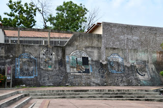 I was up early to catch the sail in to Santarém. Today, was a tender operation as our docking spot was taken by a vessel unloading fertilizer. Cathy and I walked to town passing colorful boats, the massive Cargill facility, a symbol of Brazil’s flourishing soy trade. Along the way, we stopped to check out the action and produce at the Municipal market, where we saw different varieties of fish...There is constant bustle of boats coming and going and passengers boarding and disembarking...life on the river! We continued walking the Nova Otis Fluvial...the waterfront promenade past the fish market and Marina until we came to the Matriz Square and Our Lady of the Conception Cathedral, the oldest church in the city. From here we continued to walk along the promenade until we came to the Santarém Pier. Crossing the street and we climbed up to a lookout point overlooking the murky (brownish-yellow) waters of the Amazon River where it meets the aquamarine waters of the Tapajos River. For some distance (after joining together) the different colored river waters do not mix and there is a very visible dividing line. The locals call this the "Meeting of the Waters," and it is a unique phenomenon. Continuing along the river walk we came to Joao Fona Museum a large waterfront mansion and behind the museum is the Independence Monument. We returned to city center and took the shuttle back to the port, did some shopping and returned to the ship for a relaxing afternoon poolside. Another enjoyable but hot and humid day in the Amazon.