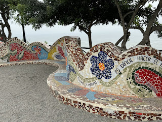 Our driver Willie and Guide Jennie picked us up at the port gate at 9am and we had a short drive to the center of Callao. We left the vehicle and walked around the area taking in the wall art and colonial buildings…a tourist security guard accompanied us providing direction where to find wall art. Next we went to the La Punta area of Callao. This area was established by Italian immigrants in the 19h century. We stopped at the Grand Admiral Miguel Grau Square in honor of the War of the Pacific. We walked around the square and caught a great performance of Peruvian Afro music by young children. Our next stop was the Real Felipe Fortress where we toured the inside of the fortress both the King and Queen’s Tower. I now know where the term standing room only comes from…the prison cell was a very narrow U-shaped room holding many soldiers in single file. After touring the fortress, we headed to Lima’s Miraflores district. Being a Saturday, traffic was heavy on the highway going into Lima…the beaches were packed and the water had many surfers enjoying their weekend. Miraflores is a residential and upscale shopping district south of downtown Lima. It is also one of the wealthiest districts that make up the city of Lima. Once we arrived in Miraflores we visited La Marina Lighthouse and then walked along the coast to Love Park. Love Park is a favorite spot for lovers to meet and houses the famous statue of lovers embracing. Leaving the coast, we went to another emblematic attraction in Miraflores, the bustling Kennedy Park. The park is home to a Church of the Miraculous Virgin built in 1939…here was a wedding taking place so we could not visit the inside of the church, just a quick photo… The park also hosts the Municipal Palace, headquarters of Miraflores’ local government and the Chabuca Granda Amphitheater. This park also sits in the center of the Miraflores shopping and restaurant district. Named after U.S. President John F. Kennedy in thanks for the aid he sent Peru during his presidency. There were many artists selling their paintings in the park…I was very tempted…there were some beautiful pieces. We called it a day after the visit to the park and returned to the ship. Another visit to Lima for the books.... Took another boatload of photos today.